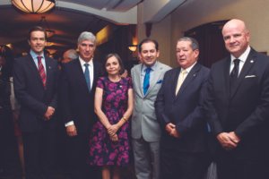 Sr. Raúl Alcívar, Vicepresidente de ACHPE, Dr. Juan Pablo Uribe, expositor, Econ. Ana Delgado Cedeño, Directora Ejecutiva de ACHPE, Econ. Víctor Hugo Villacrés, Presidente del Consejo Directivo del IESS, Dr. Alfredo Borrero Vega, Presidente de ACHPE.