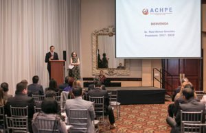 Sr. Raúl Alcívar. Presidente de ACHPE, Director General del Hospital Alcívar y Gerente de DIALCÍVAR de Guayaquil da la bienvenida a los miembros de ACHPE a la Asamblea General de la Asociación.