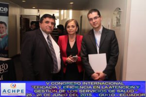 Dr. Francisco Raúl Restrepo, Director del área Latinoamérica de la Fundación Avedis Donabedian, Econ. Ana Delgado Cedeño, Directora Ejecutiva de ACHPE y un participante al Congreso.